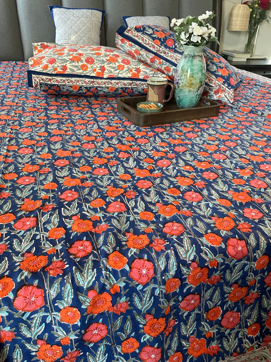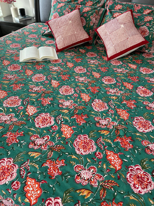 Enchanting Meadows Handblock Printed Cotton Bedsheet