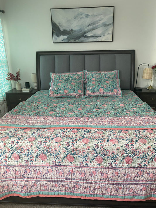 Serenity Gardens Handblock Printed Cotton Bedsheet