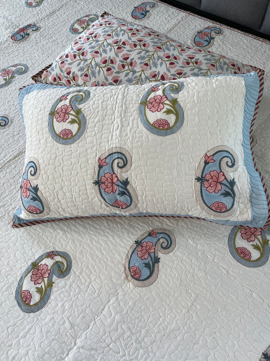 Timeless Impressions Handblock printed Reversible Mulmul quilted Bedcover - Quilted Pillow cover Included