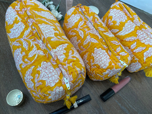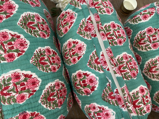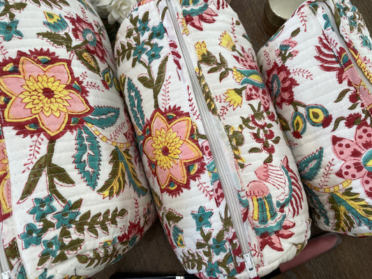 Blossom Bloom Handblock Printed Multiuse Pouch (All three are Small)