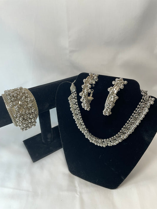 Melodic Charm Necklace with Earrings and Bracelet cuff