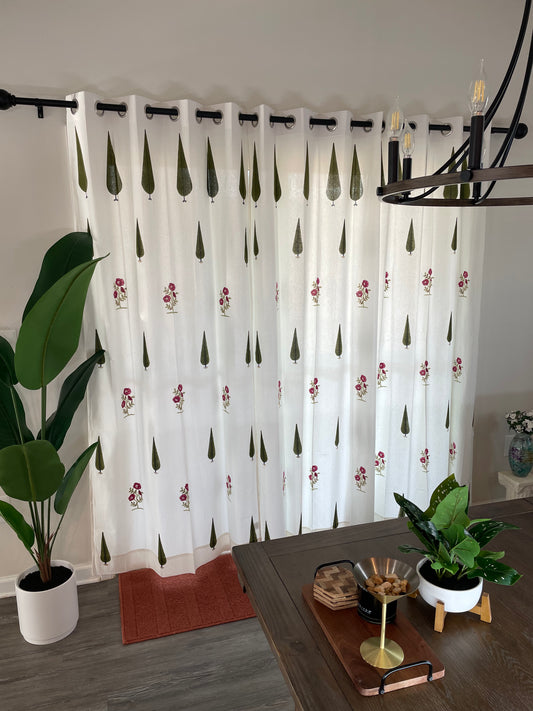 Botanical Bliss Hand Block Printed Cotton Curtain (2 Panels)
