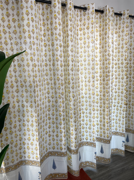 Sunshine Serenade Hand Block Printed Cotton Curtain (2 Panels)