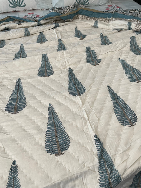 Tranquil Treasures Handblocked and Hand Stitched Reversible Mulmul Cotton Quilt