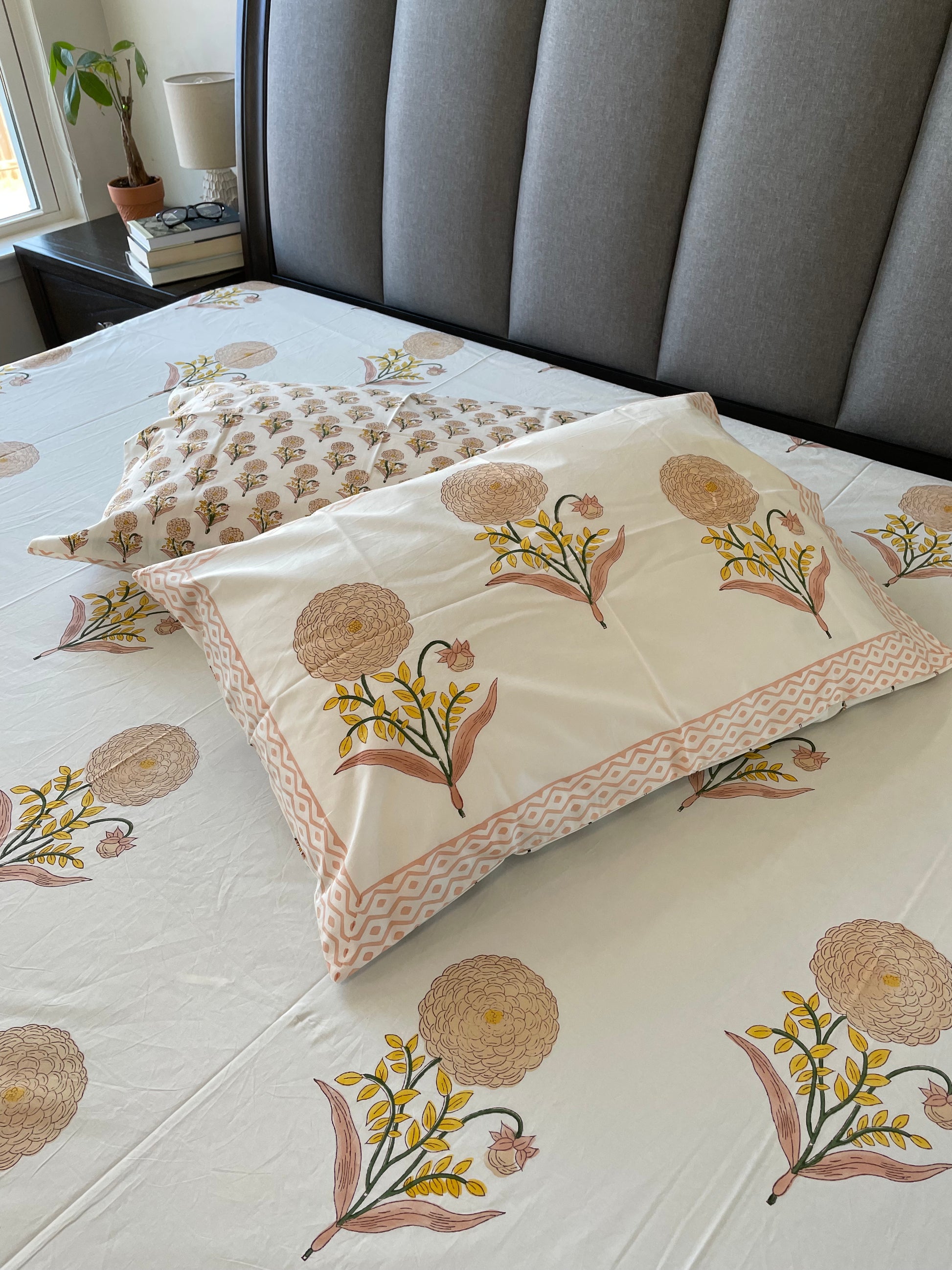 Experience the charm of handblock printing, each piece is meticulously crafted by skilled artisans, making every bedsheet unique work of art.