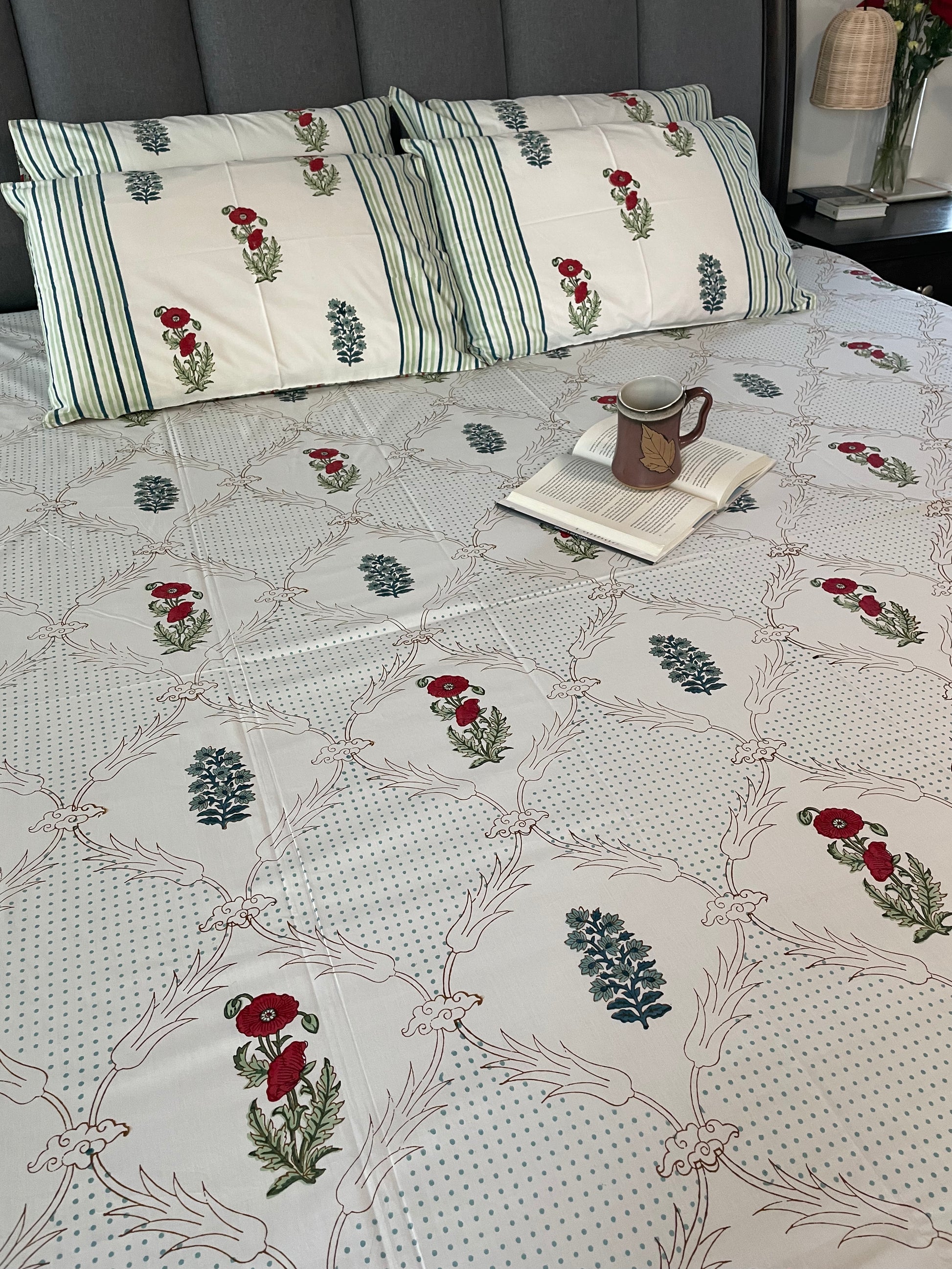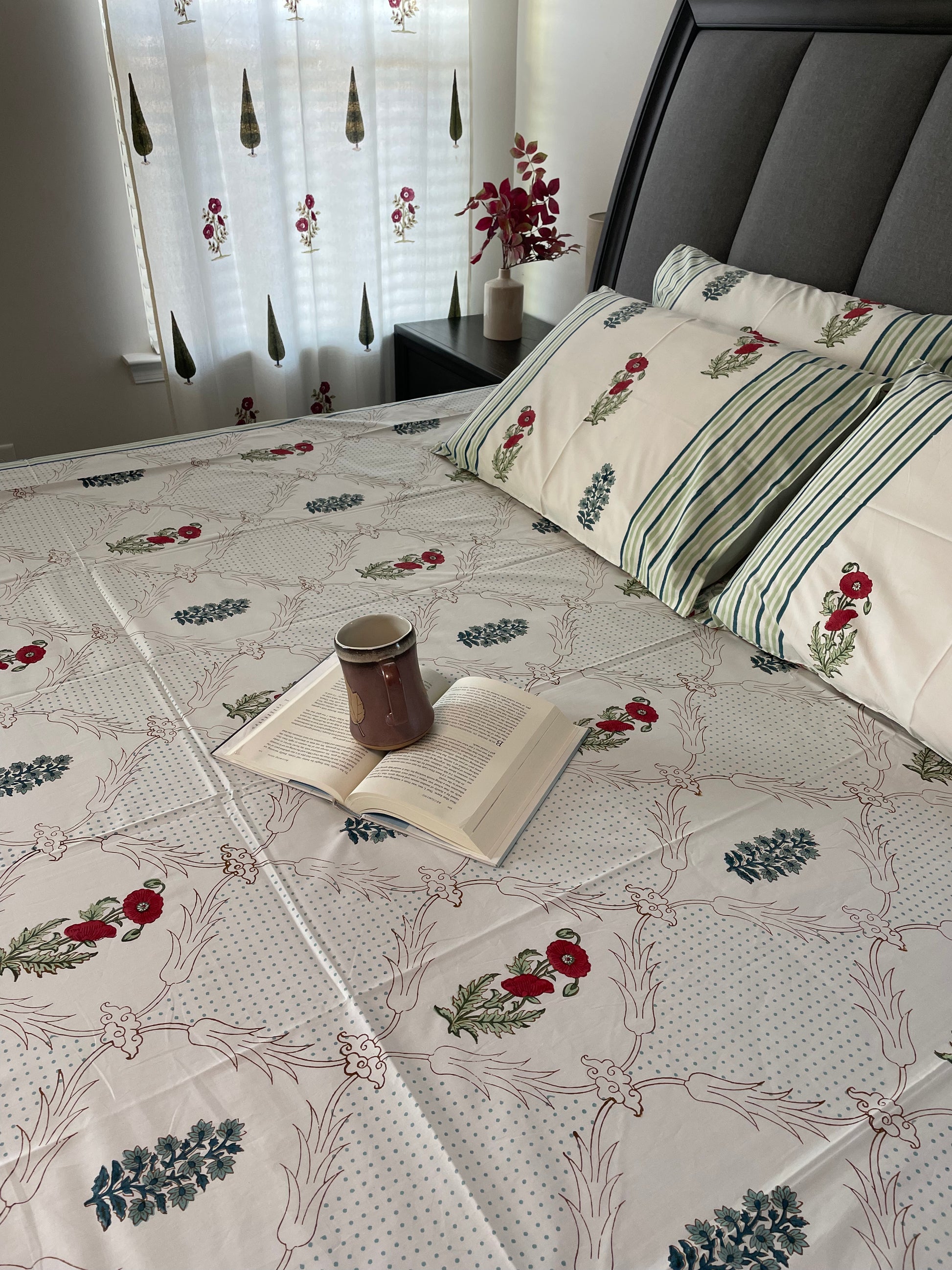Experience the charm of handblock printing, each piece is meticulously crafted by skilled artisans, making every bedsheet unique work of art.