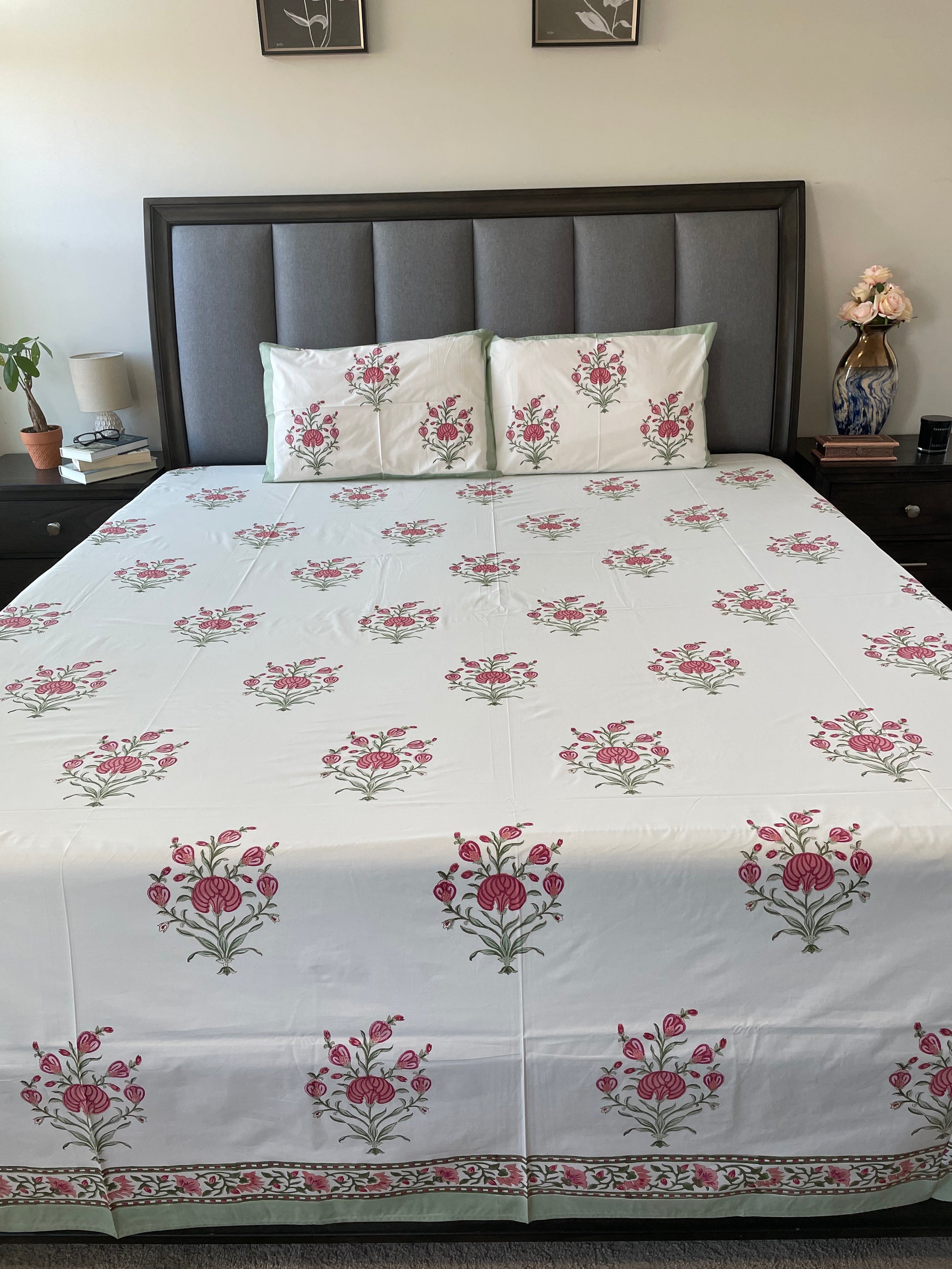 Experience the charm of handblock printing, each piece is meticulously crafted by skilled artisans, making every bedsheet unique work of art.