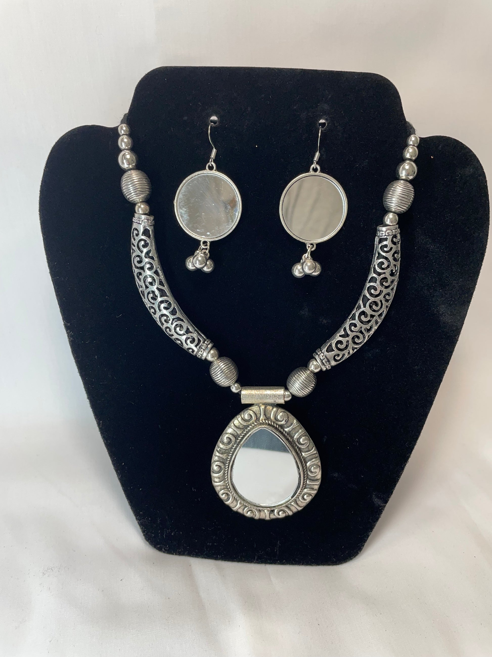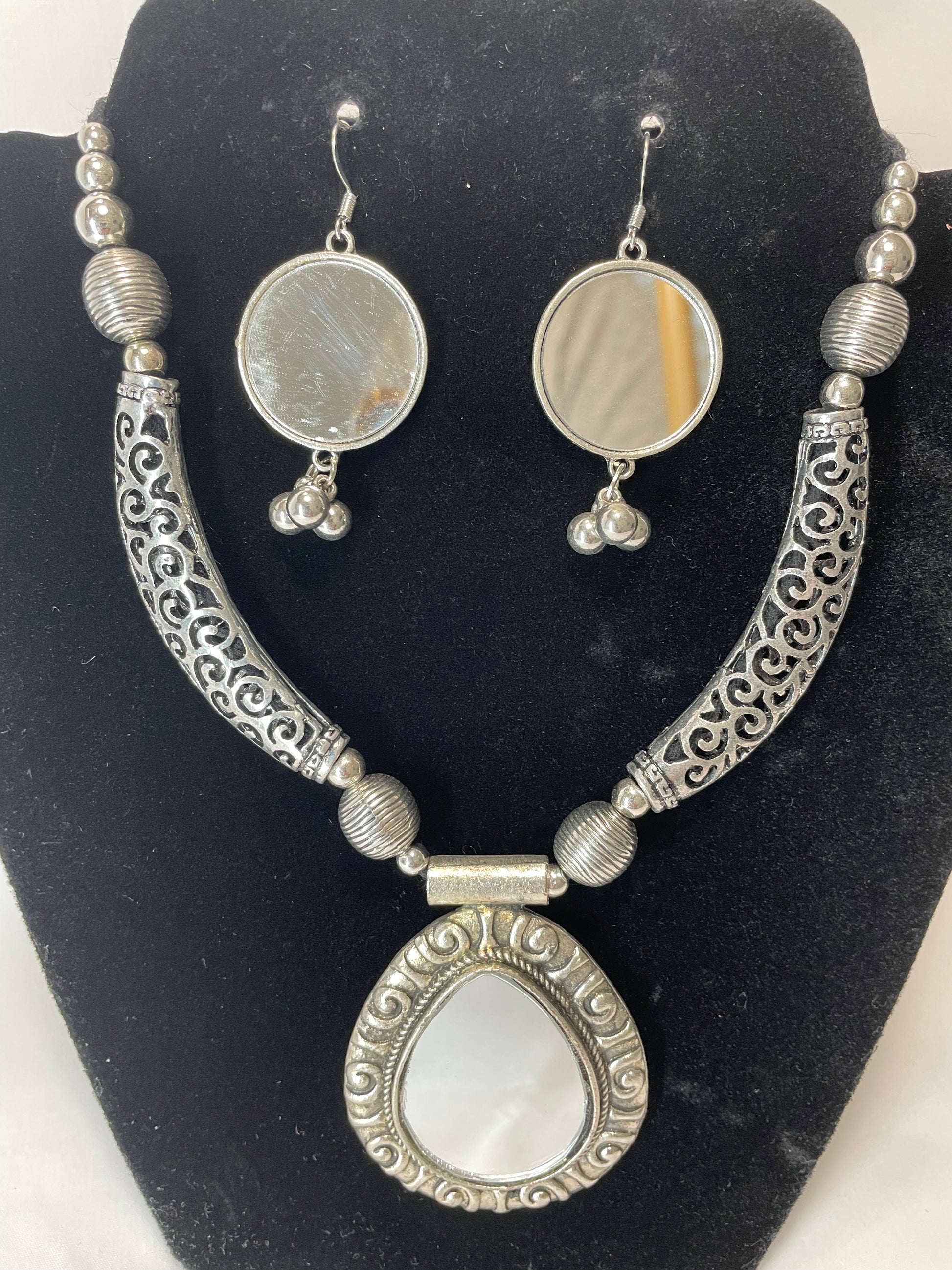 Mirror Necklace with Earrings
